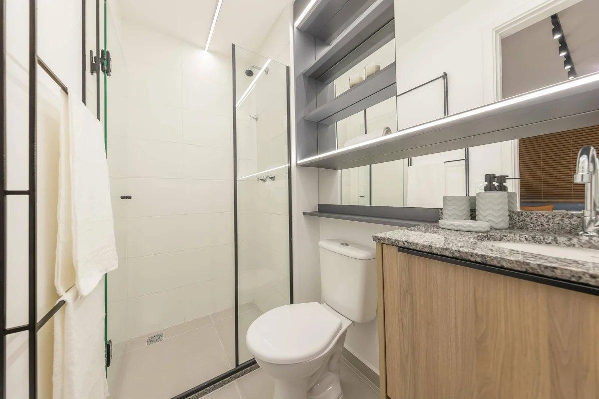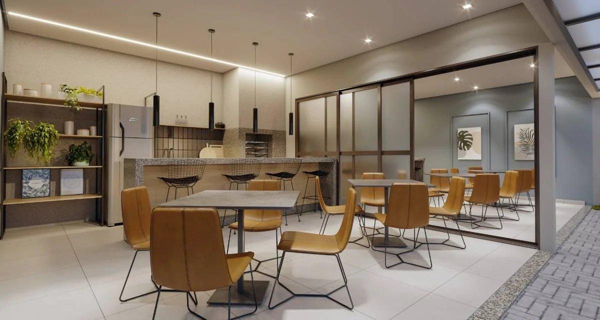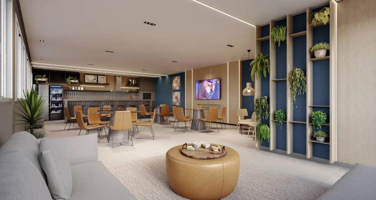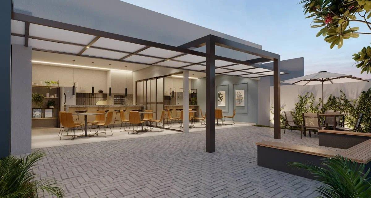 Ampla área de lazer que inclui piscina com prainha, espaço gourmet, churrasqueiras, academia e playground. Além disso, o empreendimento oferece comodidades essenciais para o dia a dia, como bicicletário, lavanderia e serviços de delivery.