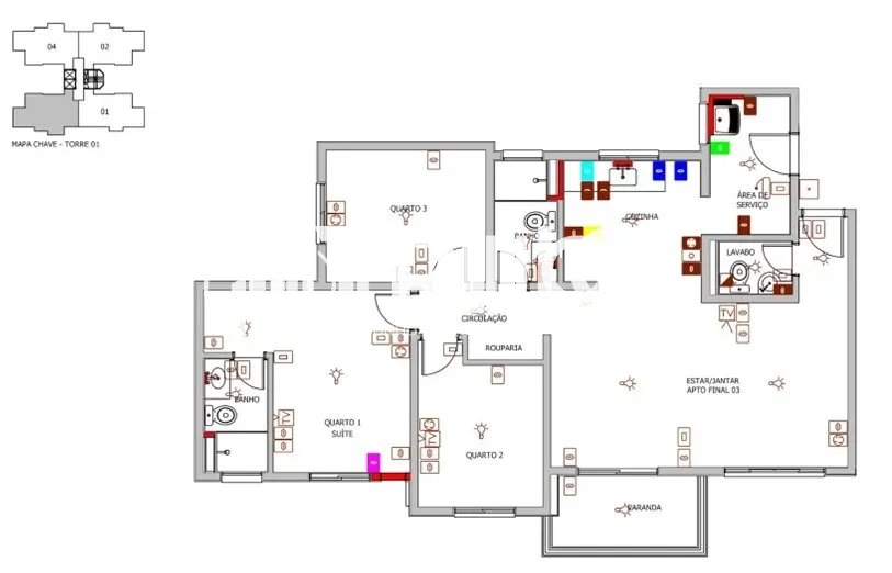 - 3 Dormitórios sendo: 1 Suíte + ponto de internet físico.