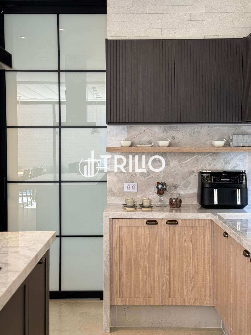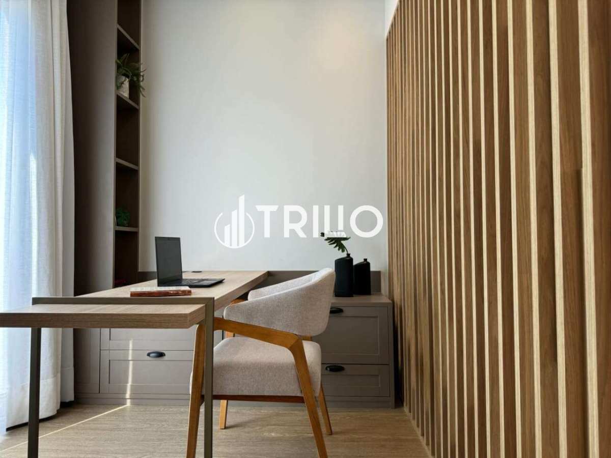 Distribuída em dois pavimentos, a casa oferece três suítes no piso superior, incluindo uma suíte master exclusiva com sauna privativa, hidromassagem e cuba dupla, além de um dormitório no piso térreo. O conforto se estende a todos os ambientes, que contam com marcenaria sob medida, bancadas em mármore Branco Paraná e infraestrutura completa para automação (projeto LED Luz).