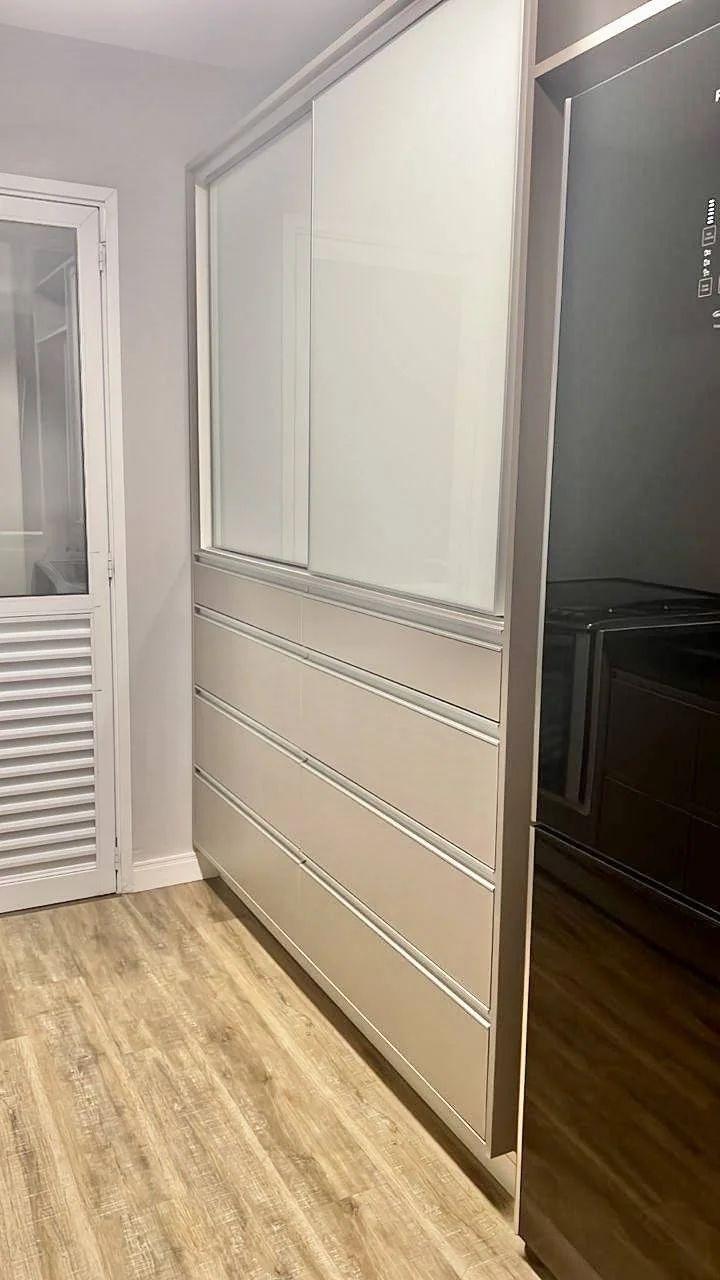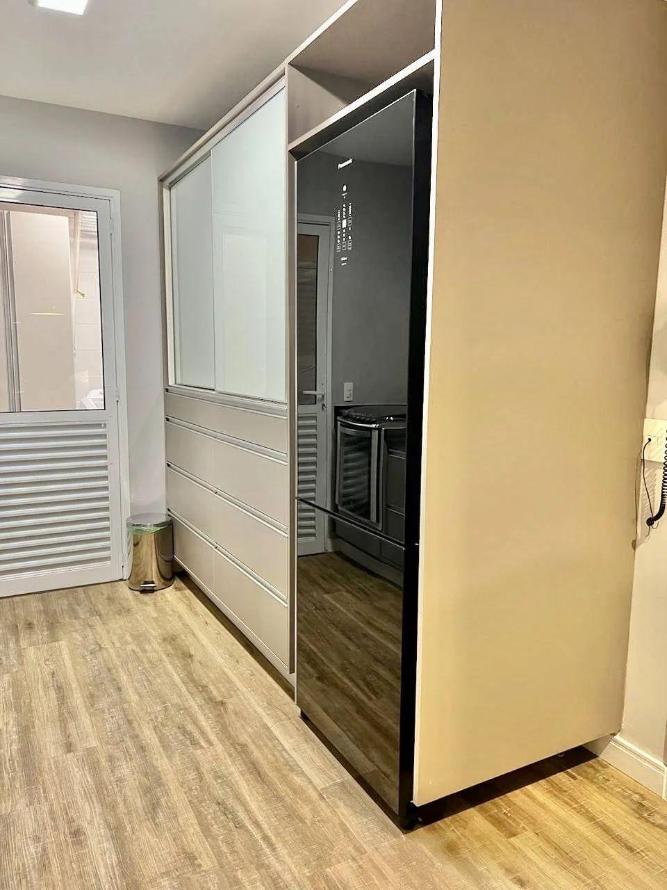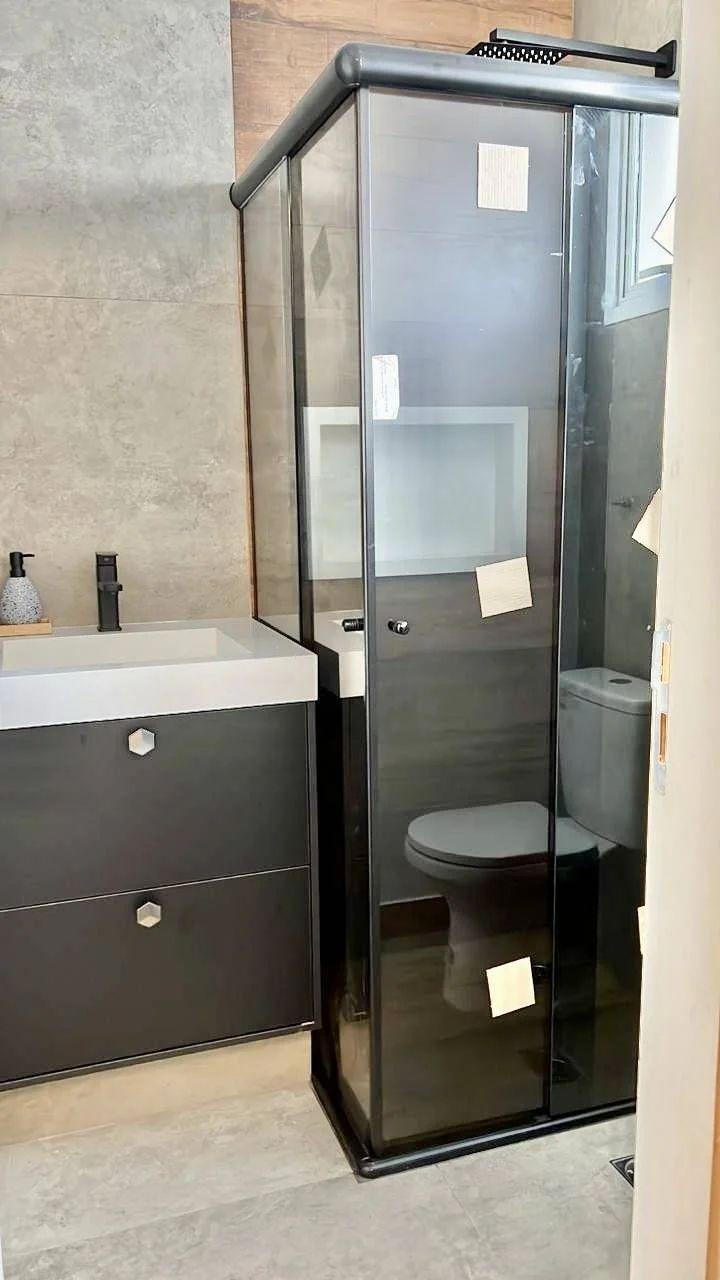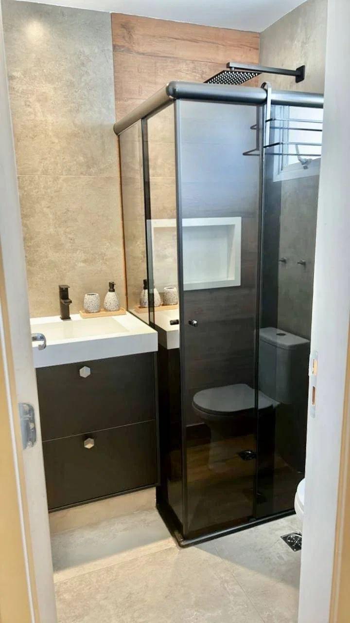 Reformado há 1 ano, com porcelanato cinza novo e portas de correr de alta qualidade.