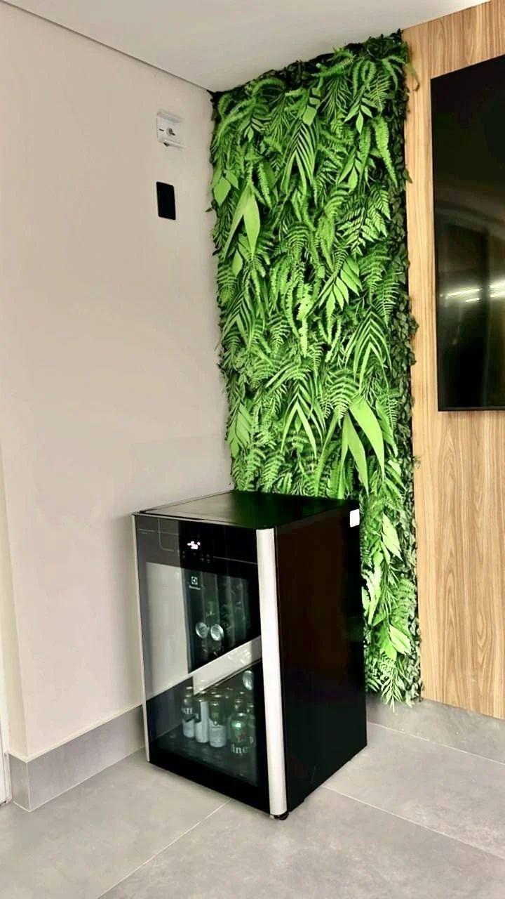 Decoração diferenciada: Painel para TV com jardim vertical e iluminação LED.